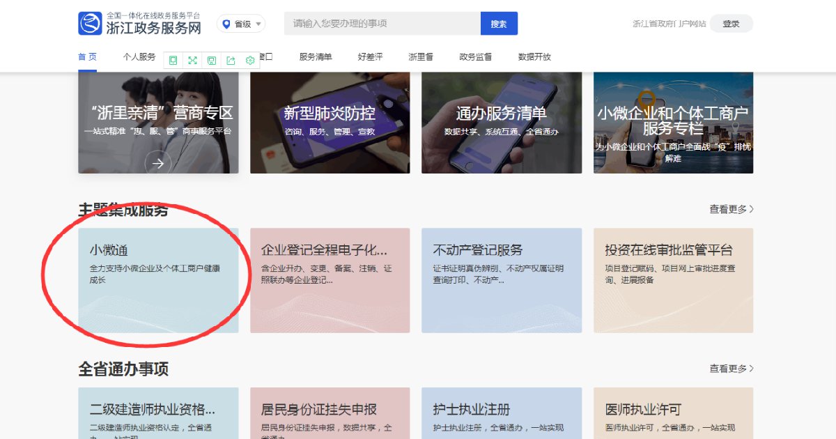 通登录后,浙江服务政务网首页,下滑找到主题集成服务,点击小微通进入主页。