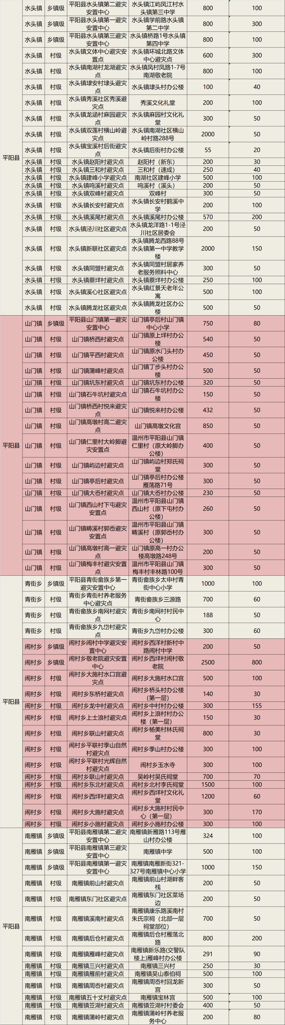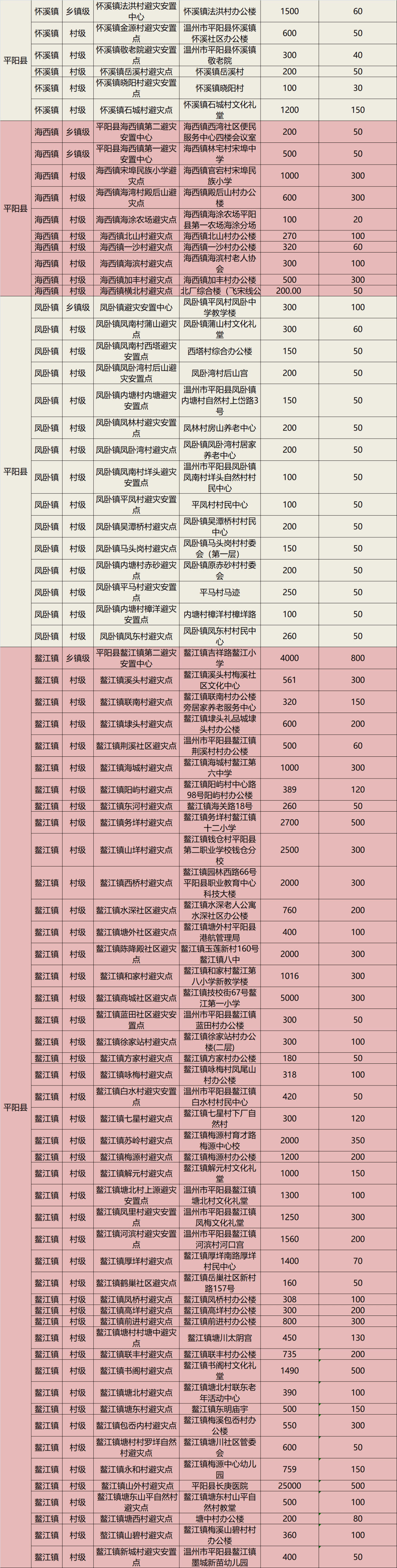 温州平阳282个避灾安置点地址一览