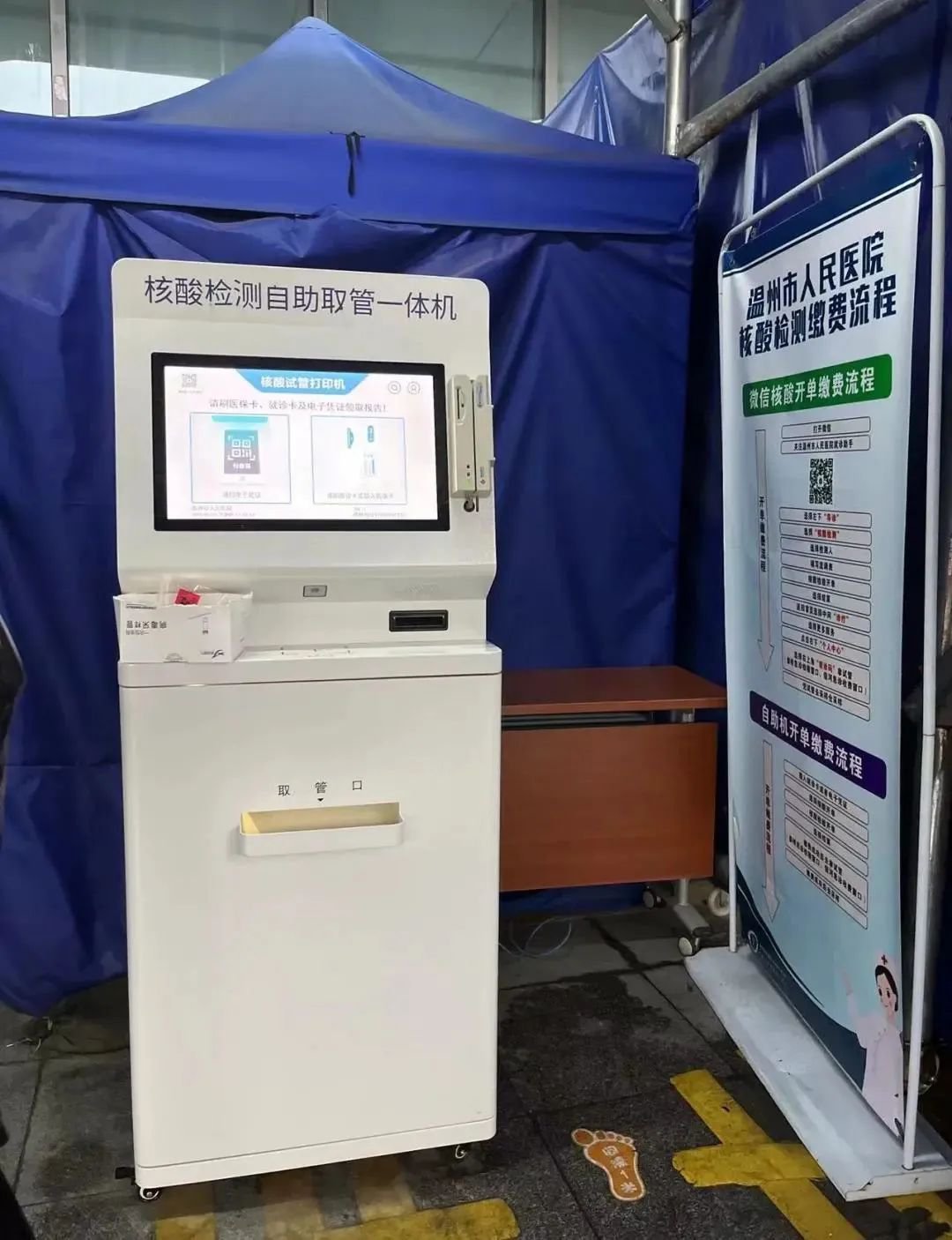 现下新冠疫情防控已进入常态化阶段,为满足群众对核酸检测快速、安全的需求,确保“应检尽检”执行到位,温州市人民医院与浙江天佳科技共同研发的核酸试管自助机于2022年5月12日正式上线投入使用。