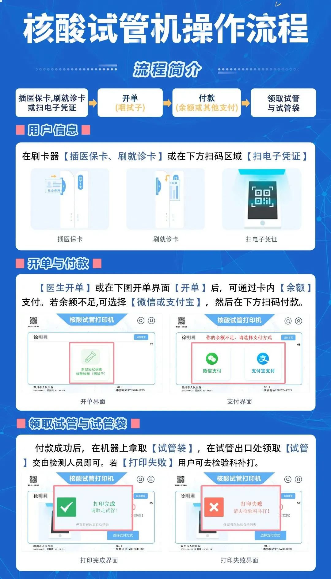 关注温州市人民医院微信公众号,并注册绑卡后,进行核酸检测开单;医院自助机开单;现场开单。