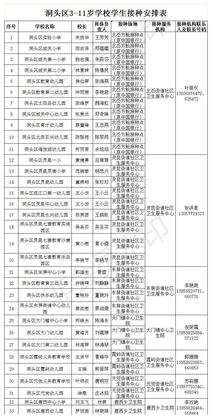 温州洞头区启动3-11岁疫苗接种最新消息(附接种地址)