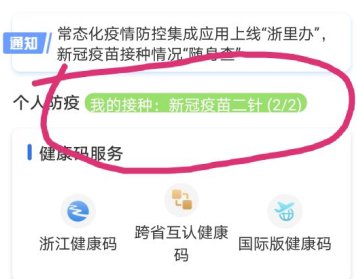 在浙江完成加强免疫的人群,浙江“健康码”下方文字将由绿色“已完成新冠疫苗接种”的提示,升级为金色“已完成新冠疫苗加强接种”提示,并可在新冠病毒疫苗接种记录中查询具体信息,作为后续加强针查验凭证。
