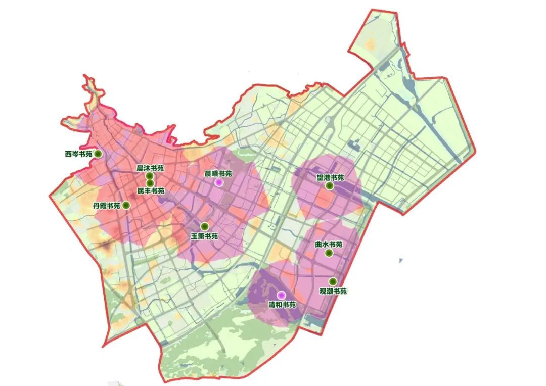 位于丹霞小区内,总建筑面积360平方米,藏书1万册。书苑以“山石林木”为设计手法,一楼四周为玻璃幕墙,把室外园林映入室内空间,入口贯穿到对景的河道,形成社区生活会客厅模式,为社区居民提供精神栖息的港湾。
