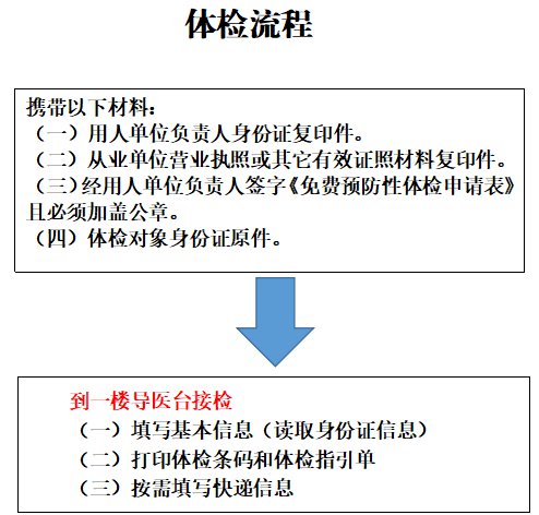 用人单位携带以下证明材料组织人员参加预防性体检: