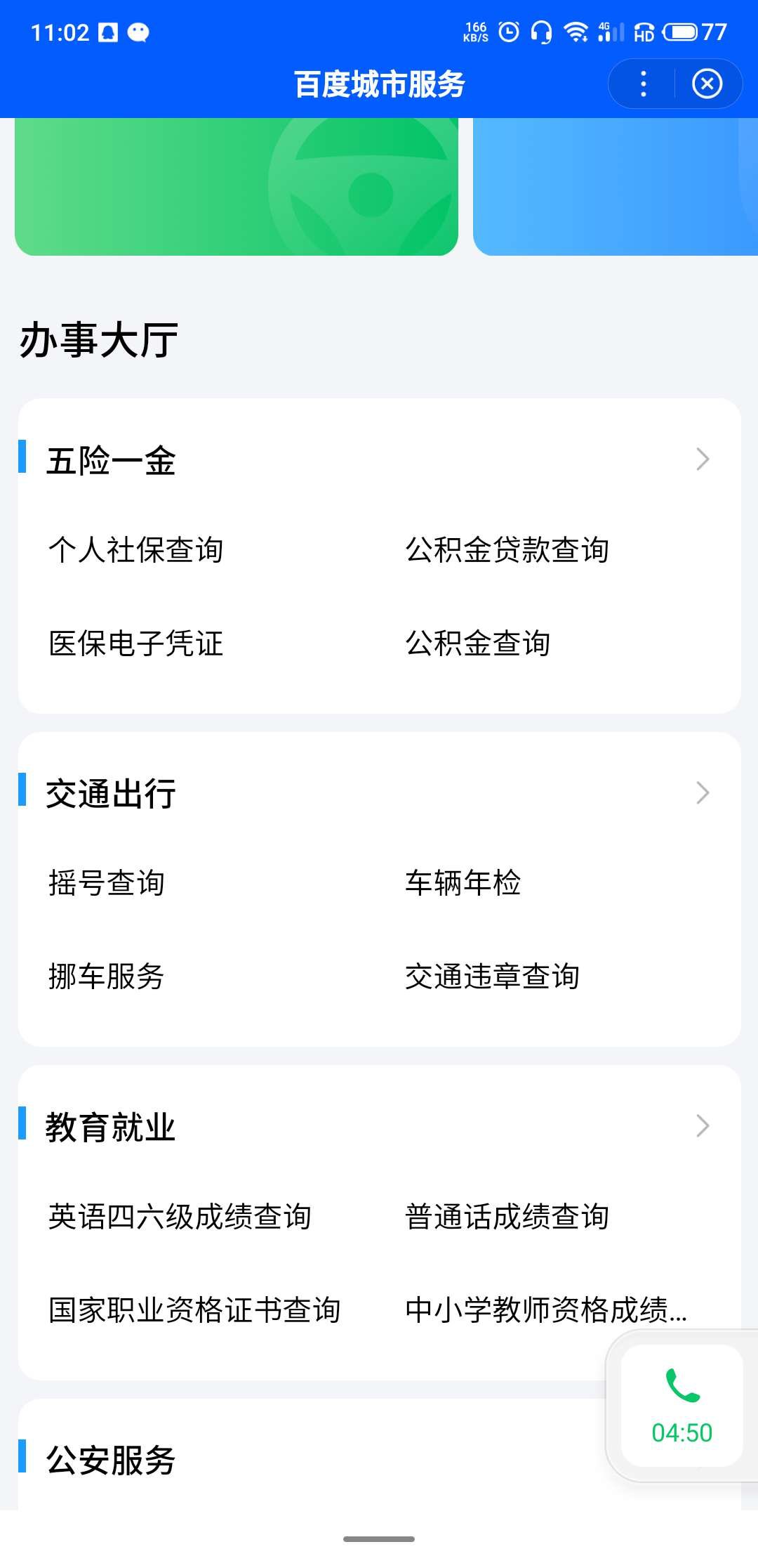 第一步:进入百度APP,搜索『百度城市服务平台』,下拉进入交通出行板块