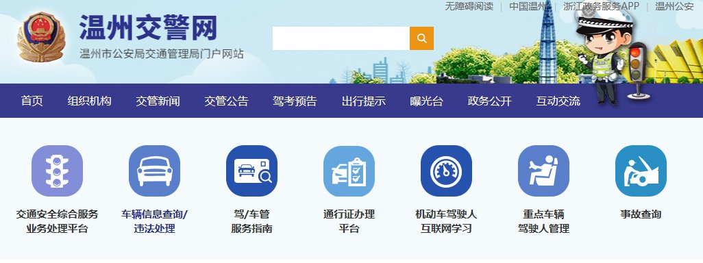 第一步:进入温州交警网官网,点击“车辆信息查询/违法处理”