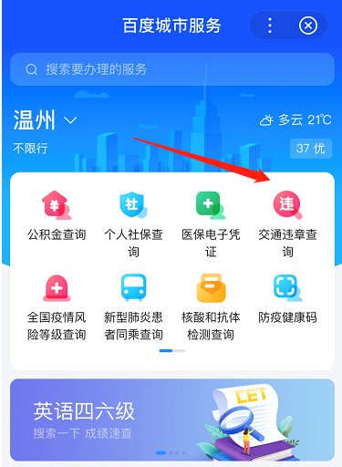 百度城市服务小程序:点击『交通违章查询』