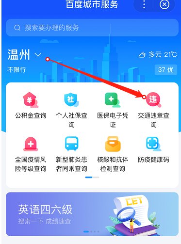 1、百度城市服务小程序:点击『交通违章查询』