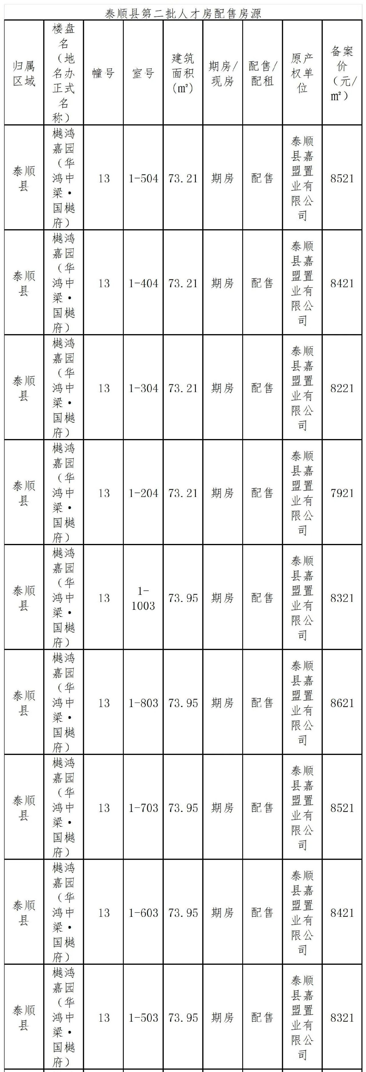 2021温州泰顺第二批人才住房配售房源信息(房源面积+房价)