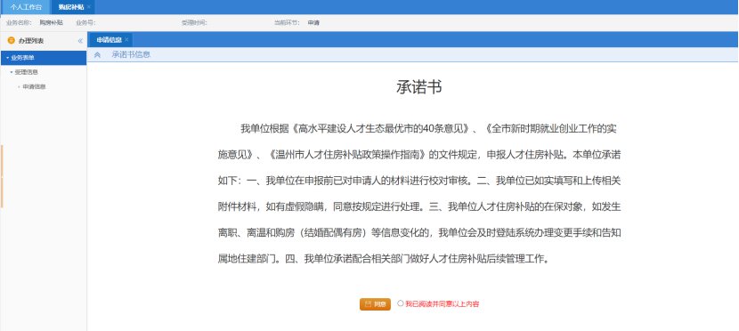 点击我已阅读承诺书以及同意核查书进入申请页面。
