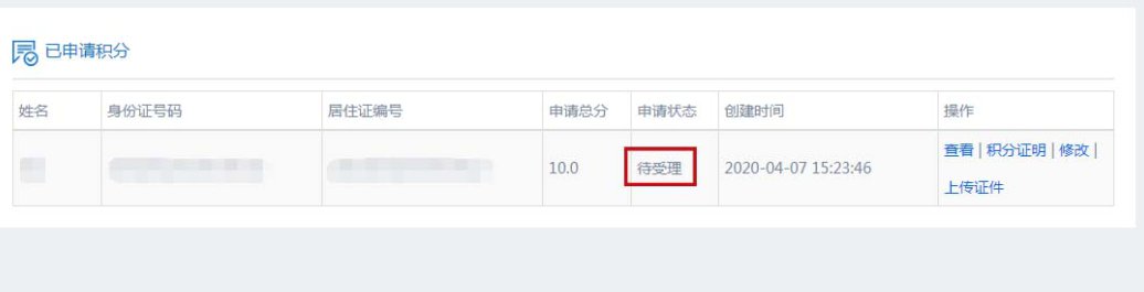 12.以上操作完成后,在“已申请积分”项目中,即可看到“已申请积分”申请状态,积分受理需要经过一定的流程(约45个工作日),请耐心等待。