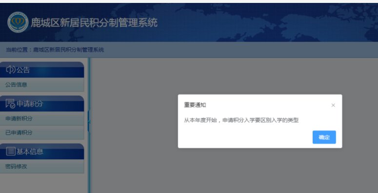 5.点击后,浏览器页面会自助跳转至“鹿城区新居民积分制管理系统”,即可进行积分管理自助办理,无需二次登录。