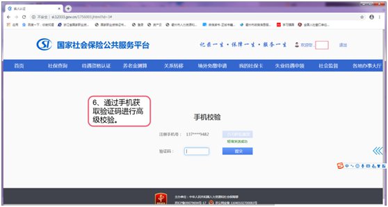 6、通过手机获取验证码进行高级校验。