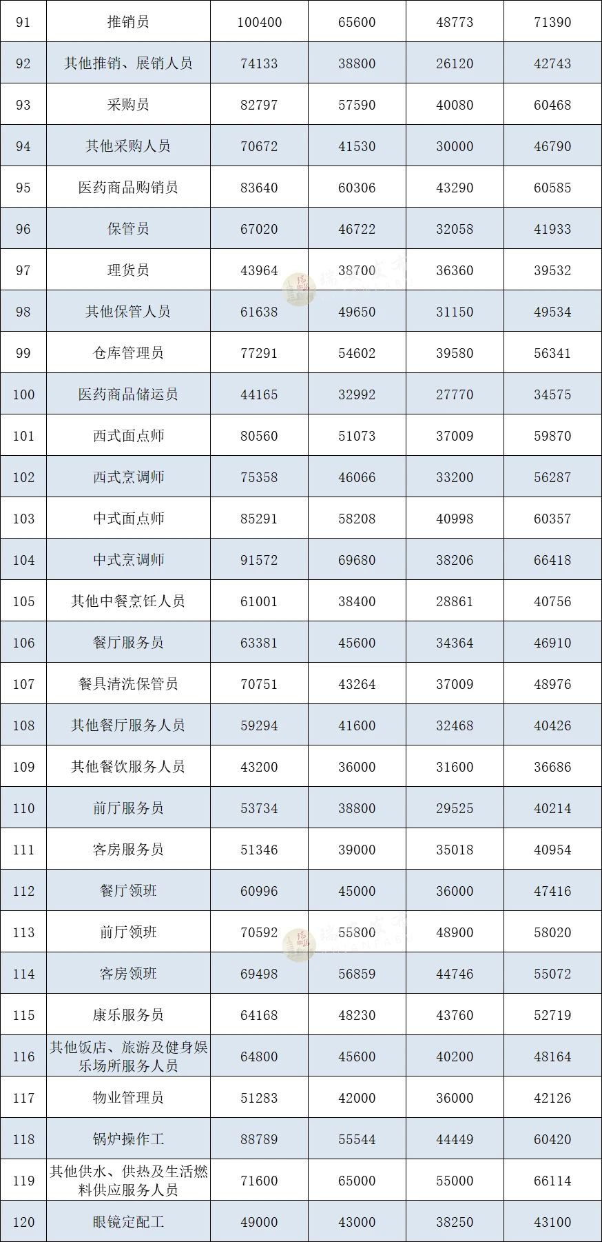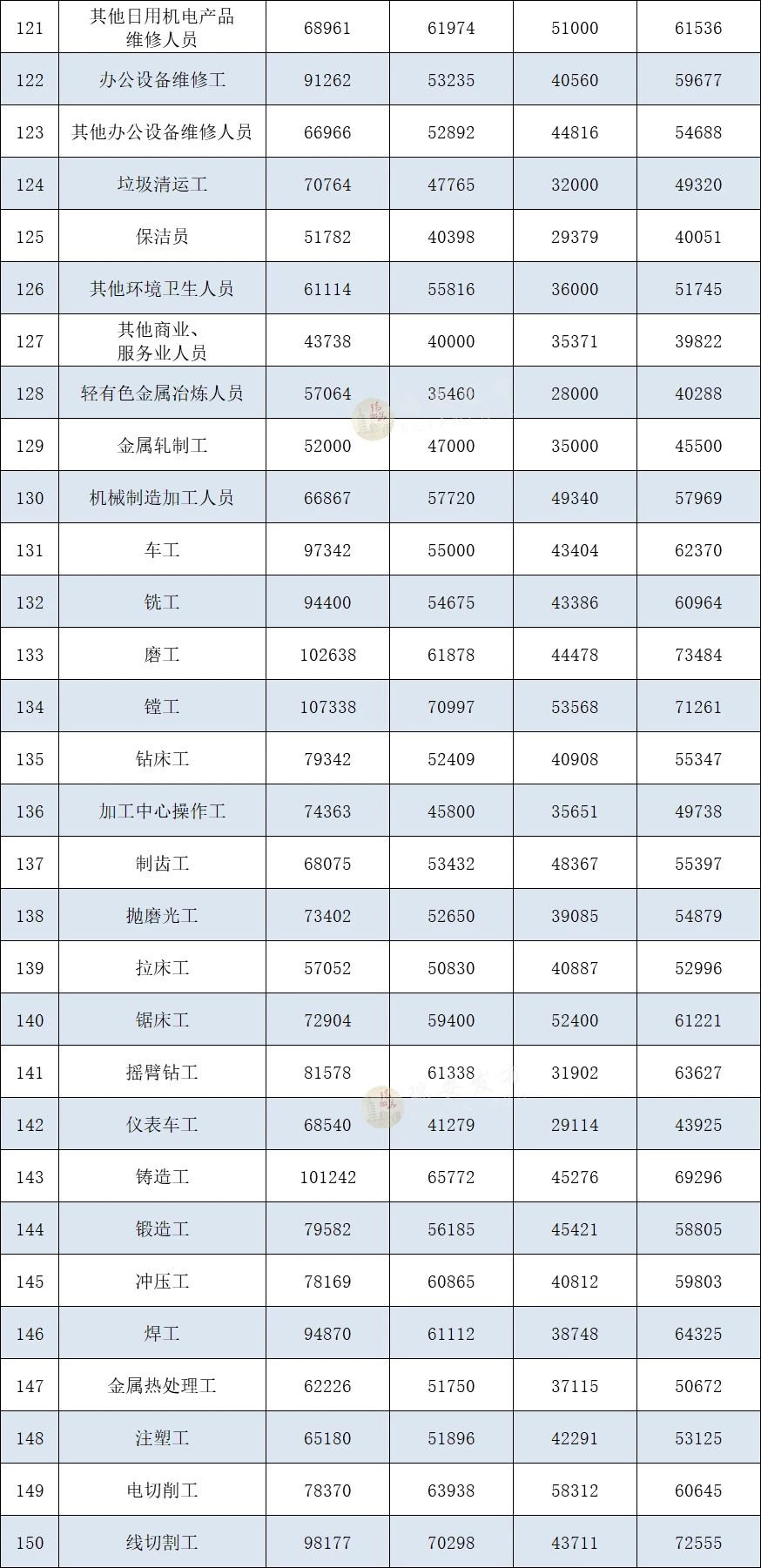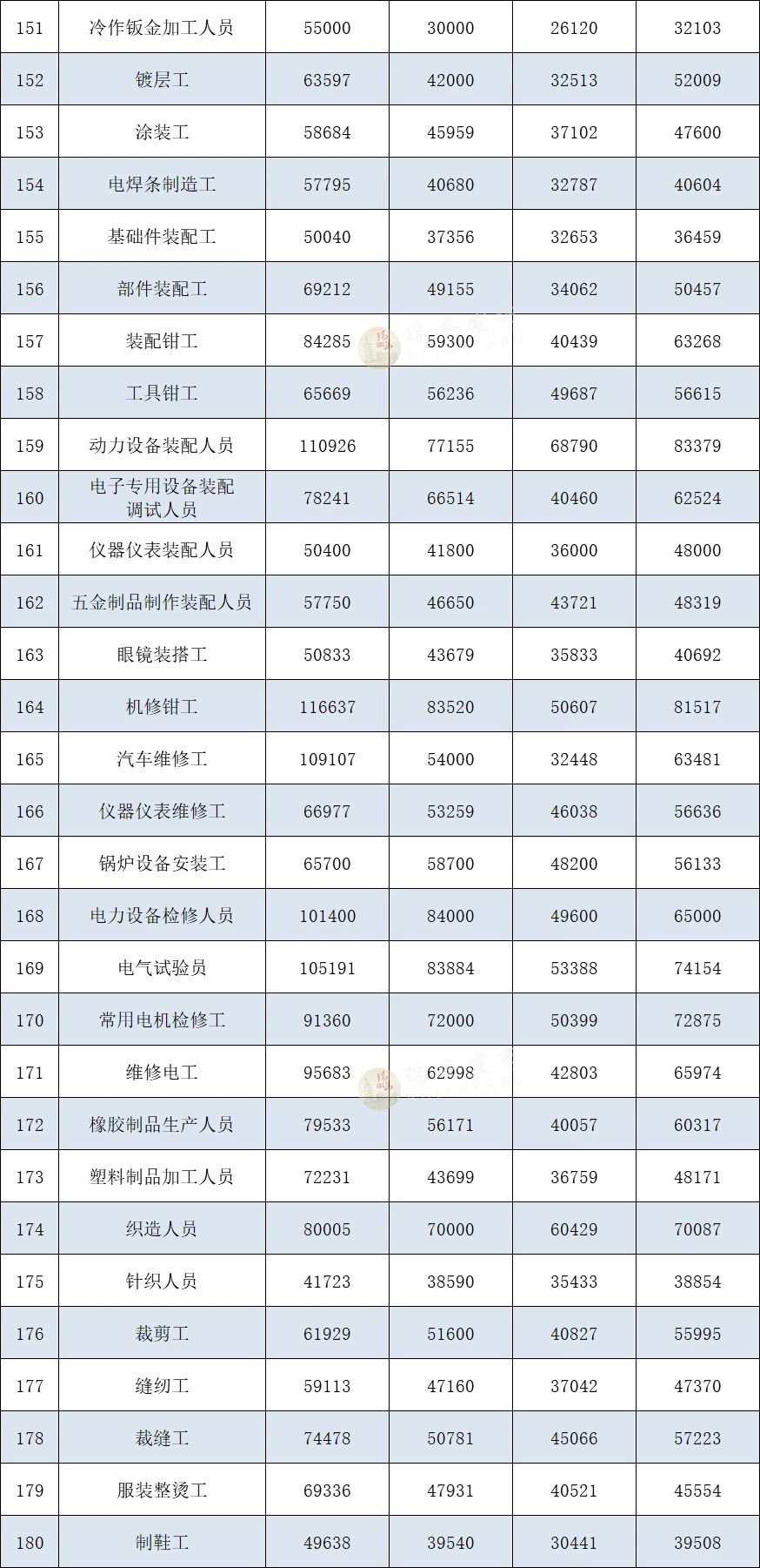 工资指导价分为高位数、中位数、低位数以及平均数。此次公布的不同工种工资指导价中,平均年薪超10万元的职位有17个。