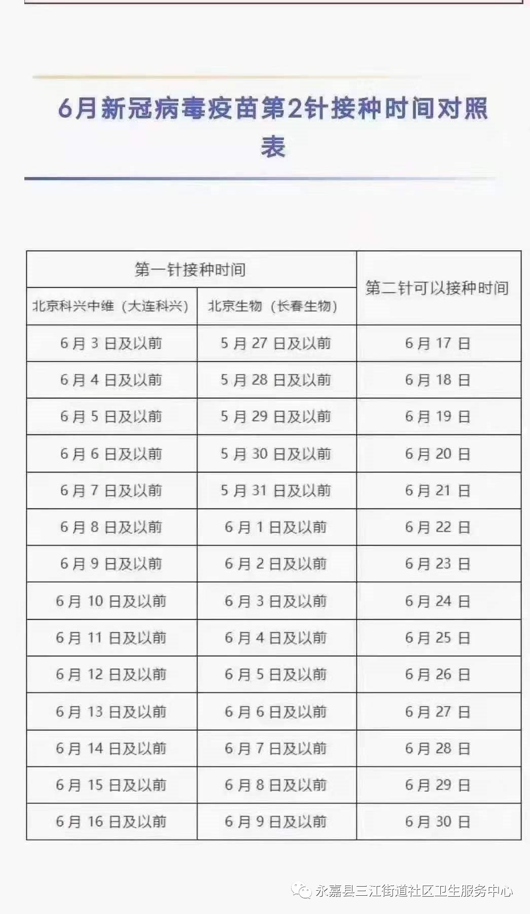 7月1日三江街道社区卫生服务中心开放接种北京科兴中维,可首针、续针,续针优先接种。