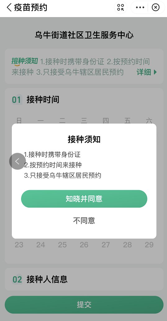 流程如下:用手机“支付宝”;在“成人疫苗”专栏选中“9价HPV疫苗”找到“乌牛街道社区卫生服务中心”进行预约;根据提示填写信息,预约成功会同时收到预约短信。