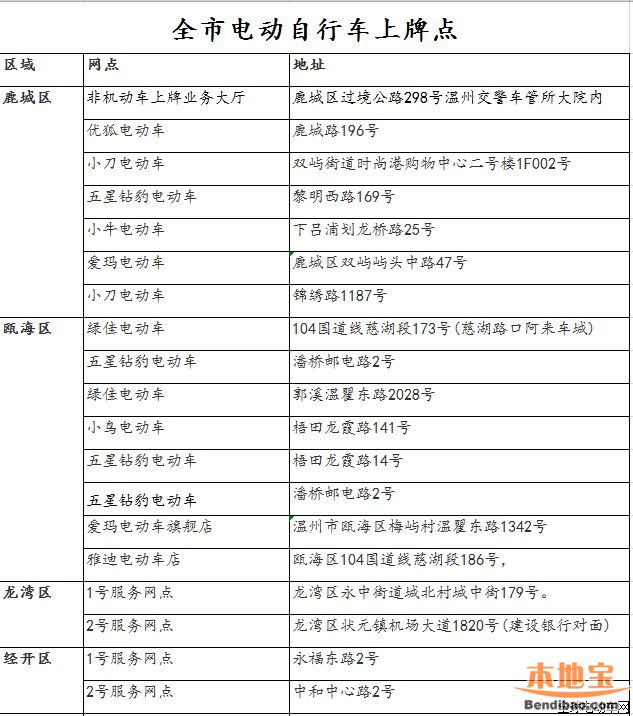 温州电动车上牌点汇总(温州电动车上牌目录查询网)