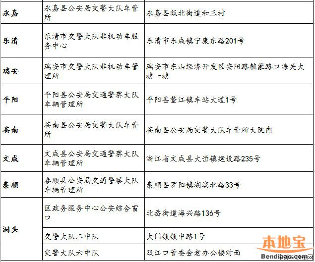 温州全市公安交警部门两轮电动车登记备案地点汇总
