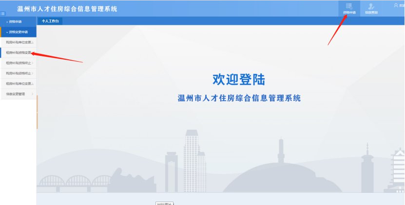 3. 登录成功后,点击资格申请---租房补贴(购房补贴)