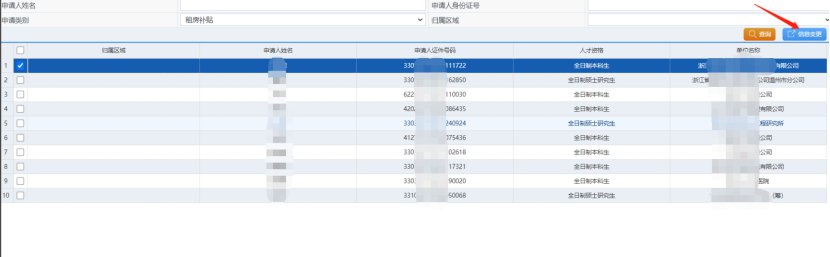 1. 登录后点击资格申请---资格变更申请---租房补贴信息变更管理。选中需要变更基本信息的人才后,点击信息变更,即可修改其手机号码、经办人手机号码、电子邮箱等基本信息。(此功能任何涉及到资格的信息均不可变更)