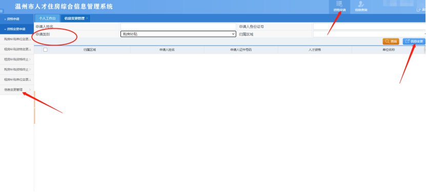 1. 登录后点击资格申请---资格变更申请---租房补贴资格变更申请,可以从享受期间的人员中选择需要变更的人才,即可获取历史申请记录。然后修改后需要变更的人才资格后,上传附件提交到初审环节,完成资格变更申请。