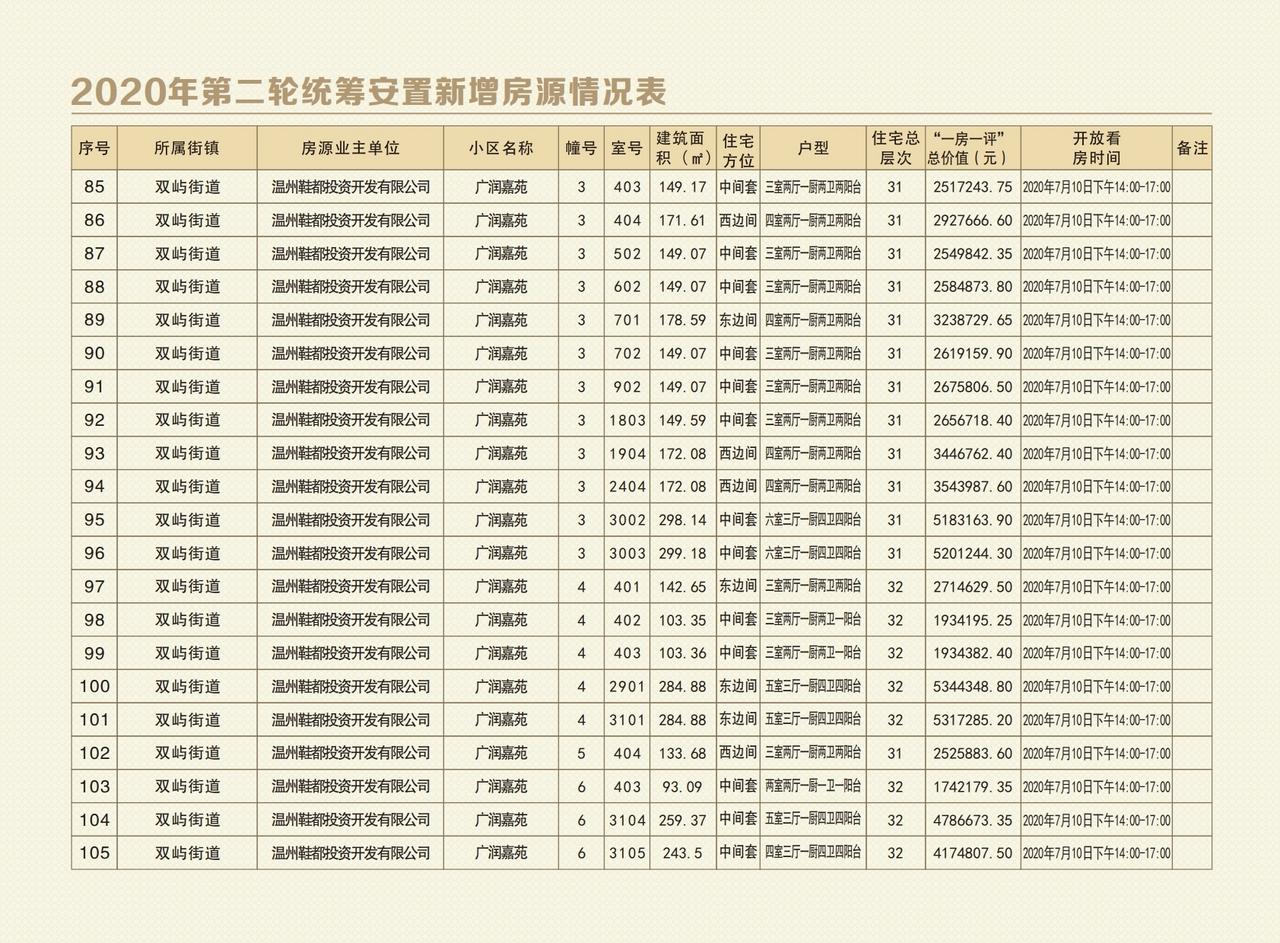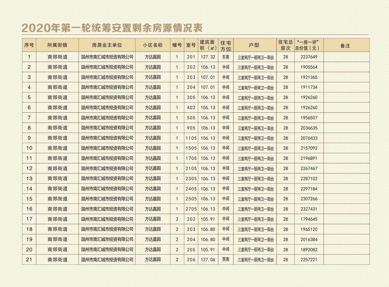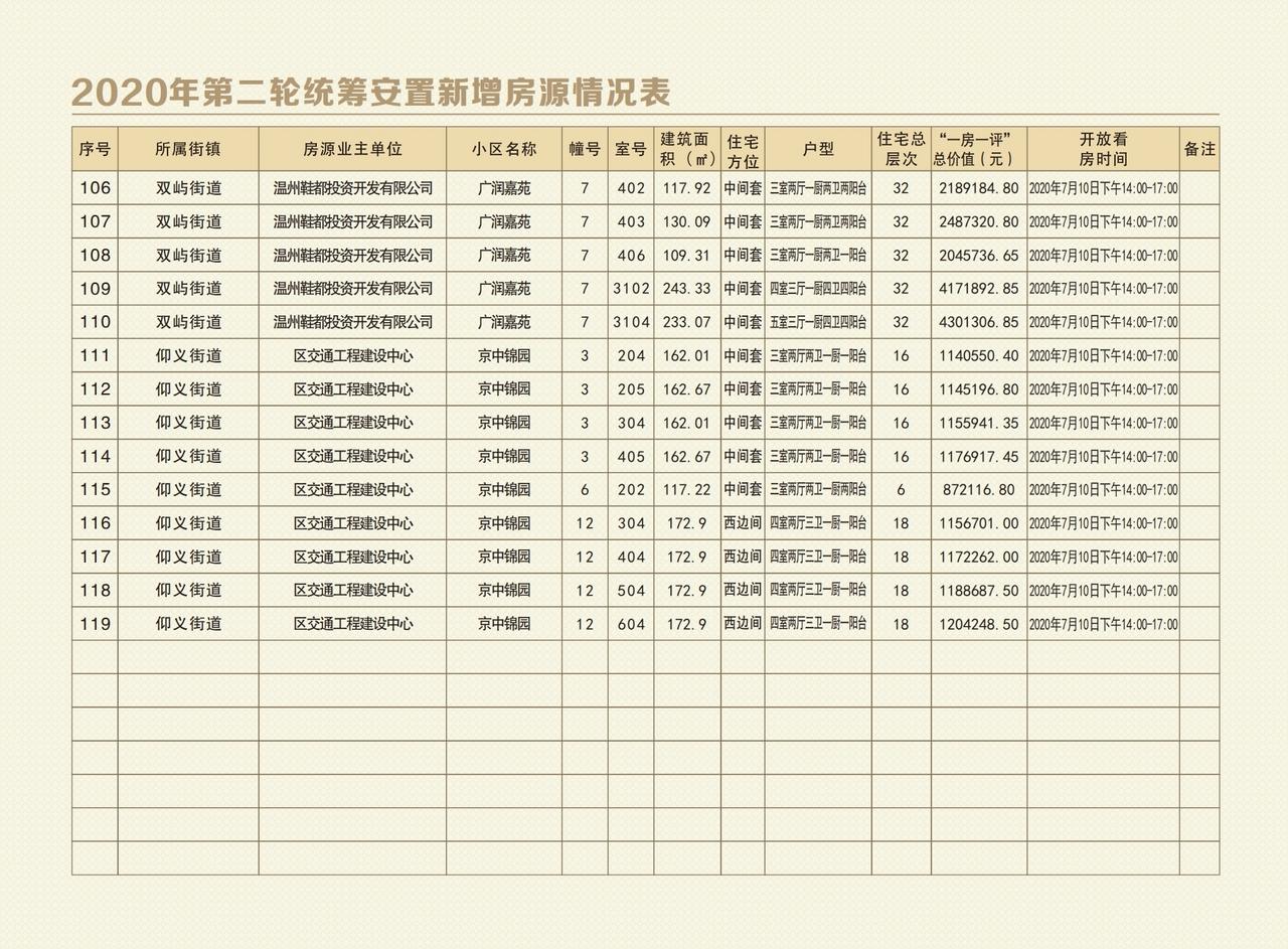 2020温州鹿城第二批安置房房源信息表(温州市政府第二批安置房出售)