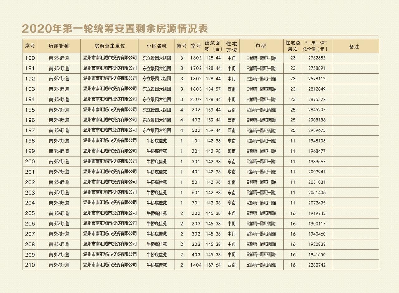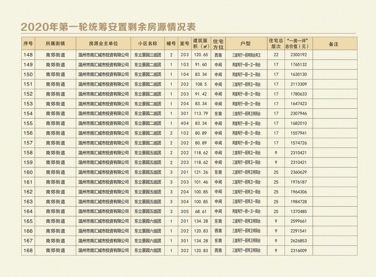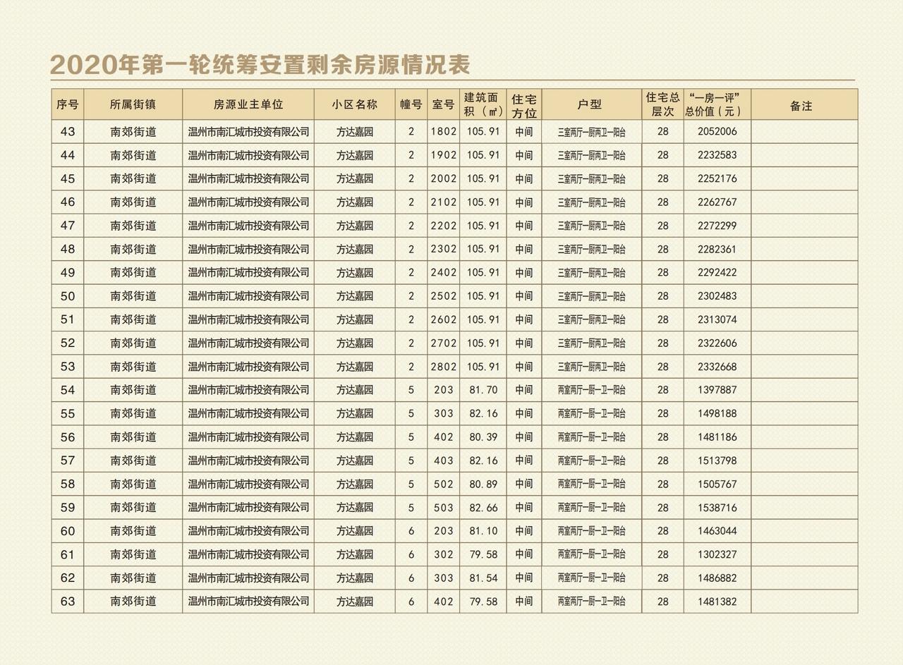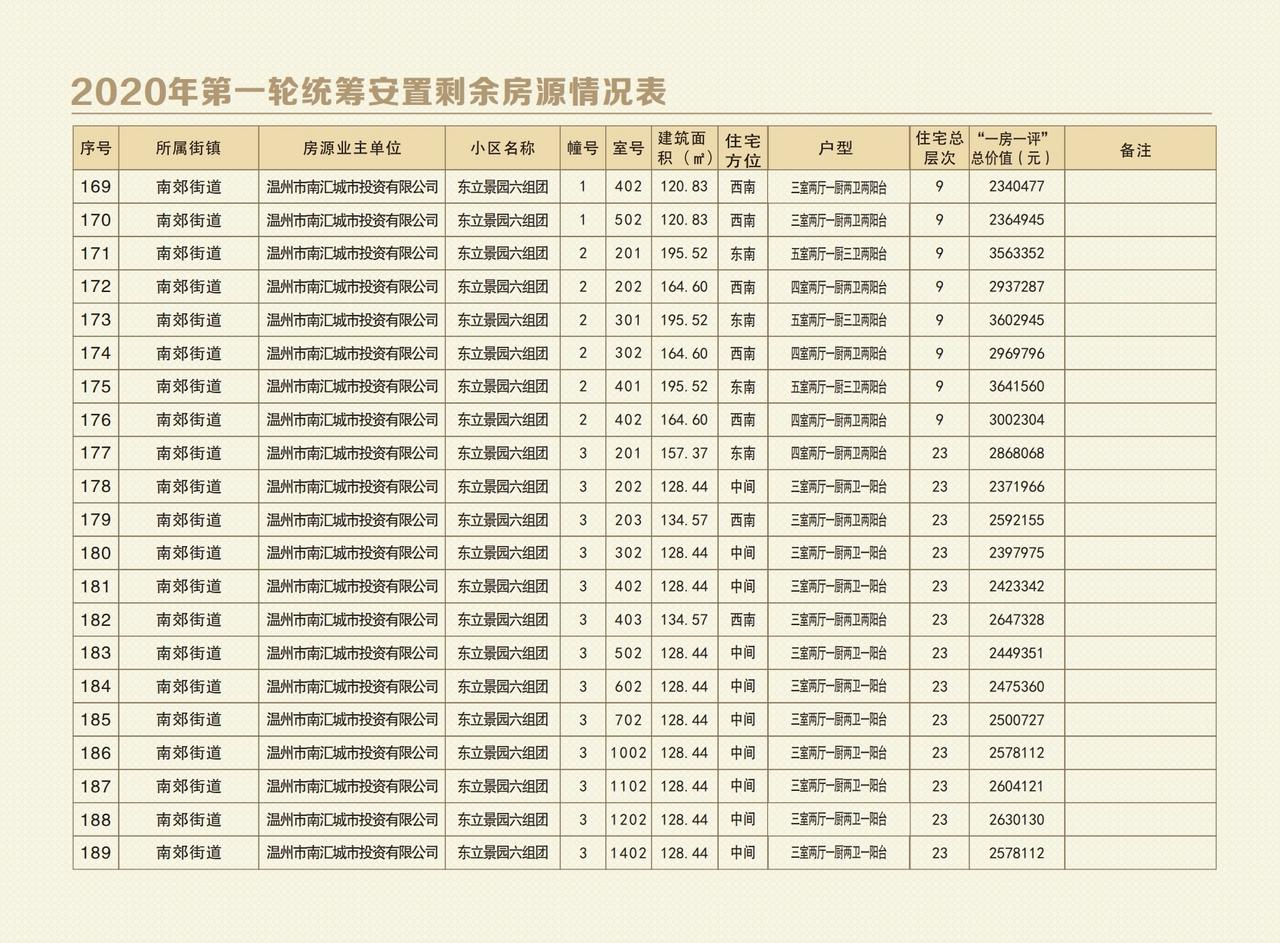 2020温州鹿城第二批安置房房源信息表(温州市政府第二批安置房出售)