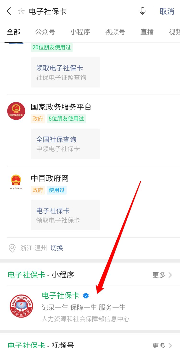 搜索“电子社保卡”,进入“电子社保卡”小程序。