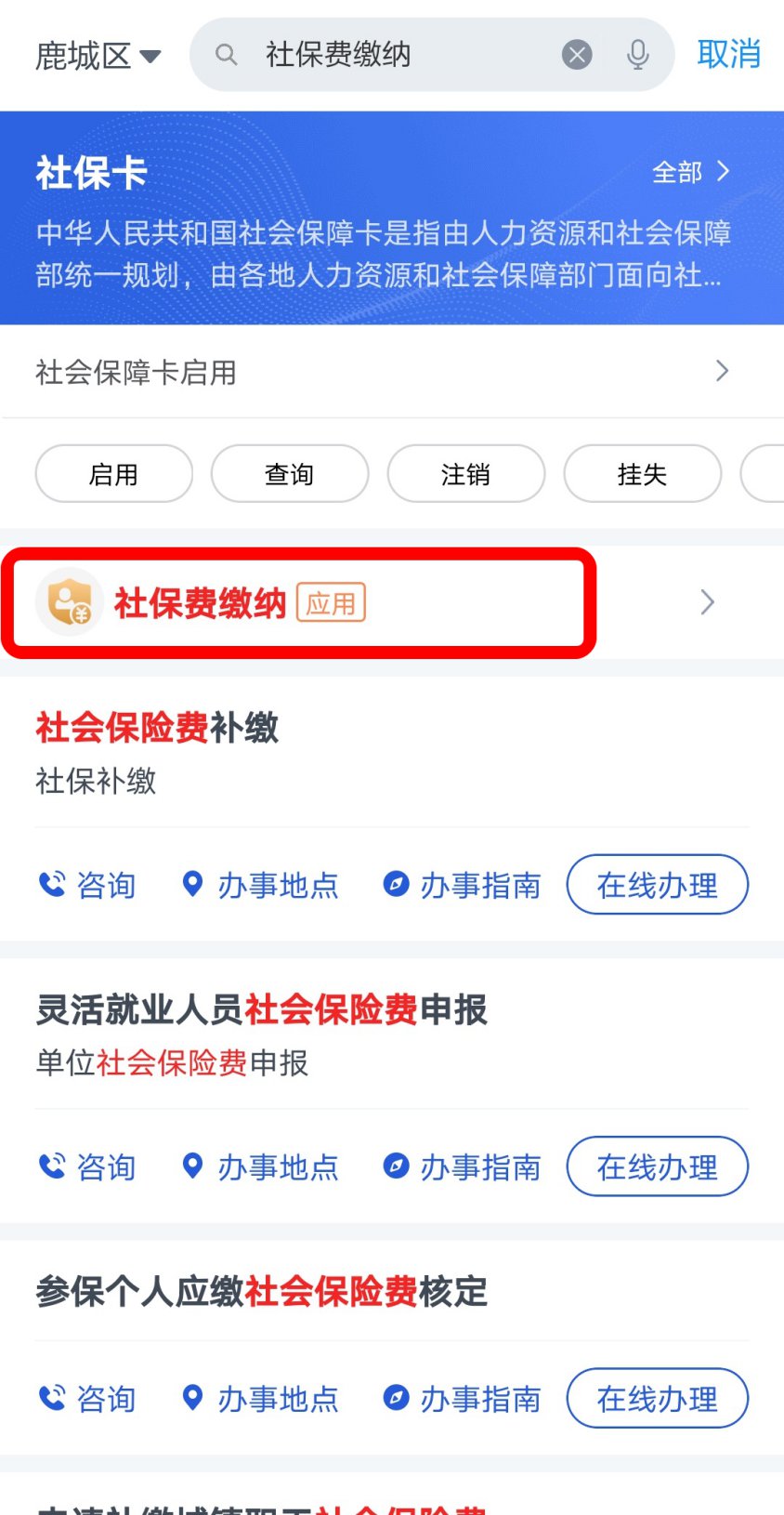 4、以灵活就业人员身份参加职工基本养老保险的个人,可以在办理参保次月(次月缴本月费用)开始,在浙里办直接搜索“社保费缴费”,通过下图所示红色圈中处,进入社浙江税务社保费缴纳界面,可以为自己或替他人缴纳社保费。