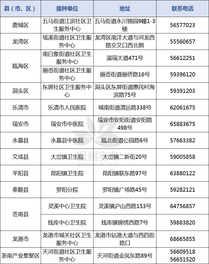 2021在温外籍人士接种新冠疫苗接种点一览表