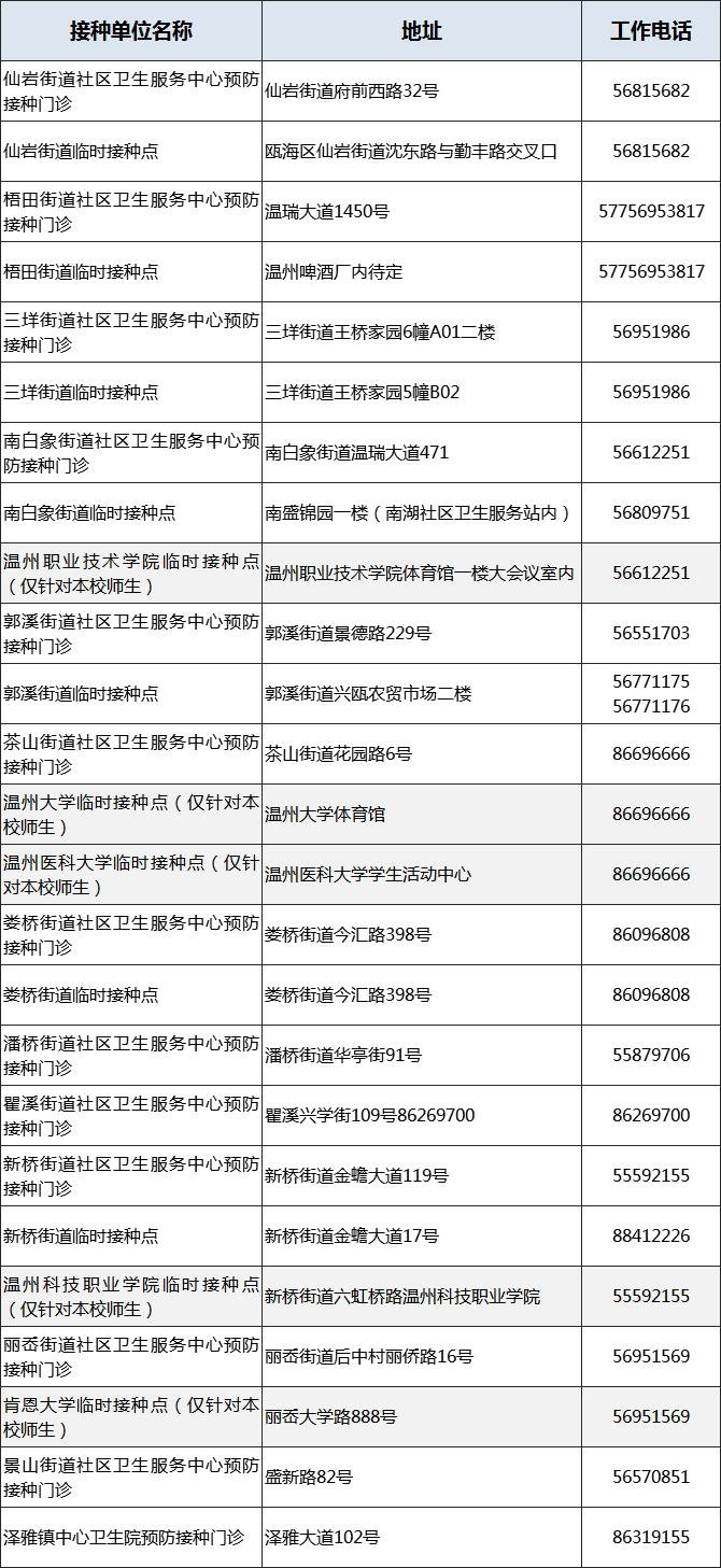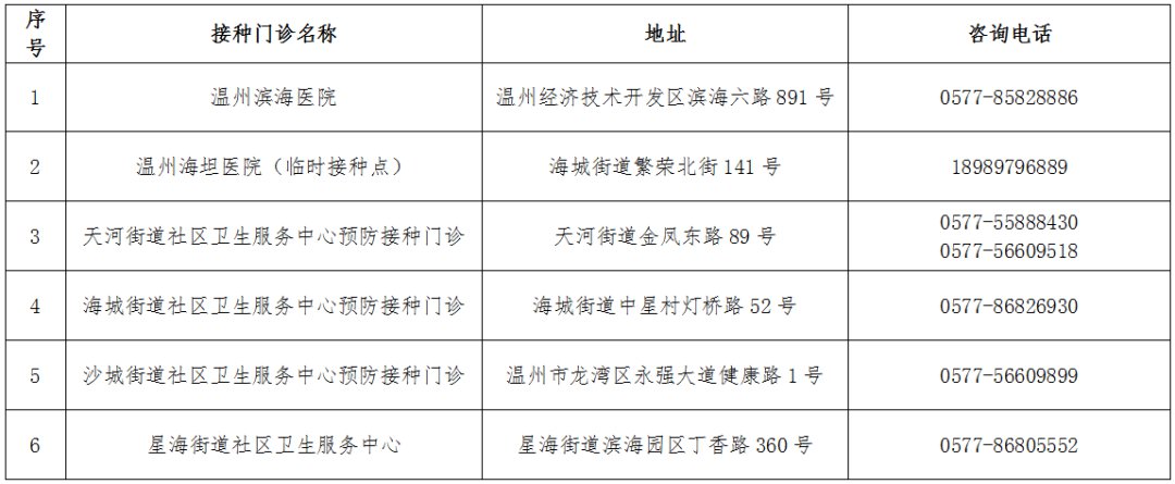 地址:温瑞大道1450号5号楼三楼预防接种厅