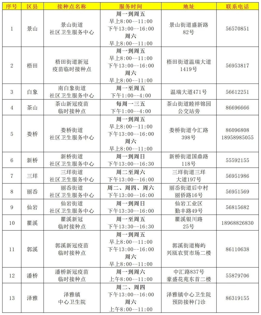 地址:瞿溪街道兴学街109号(中心住院楼二楼预防接种门诊)