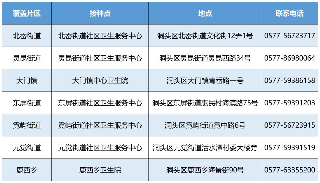 各街道(乡镇)开放情况请直接联系各社区卫生服务中心(乡镇卫生院)常规接种点,详见附表。