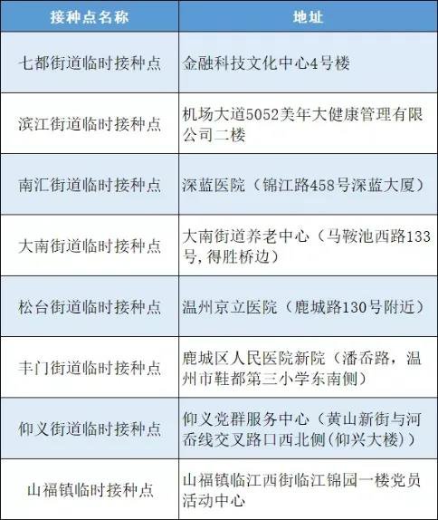 2021温州鹿城区新冠疫苗接种社区地址+联系电话+接种时间