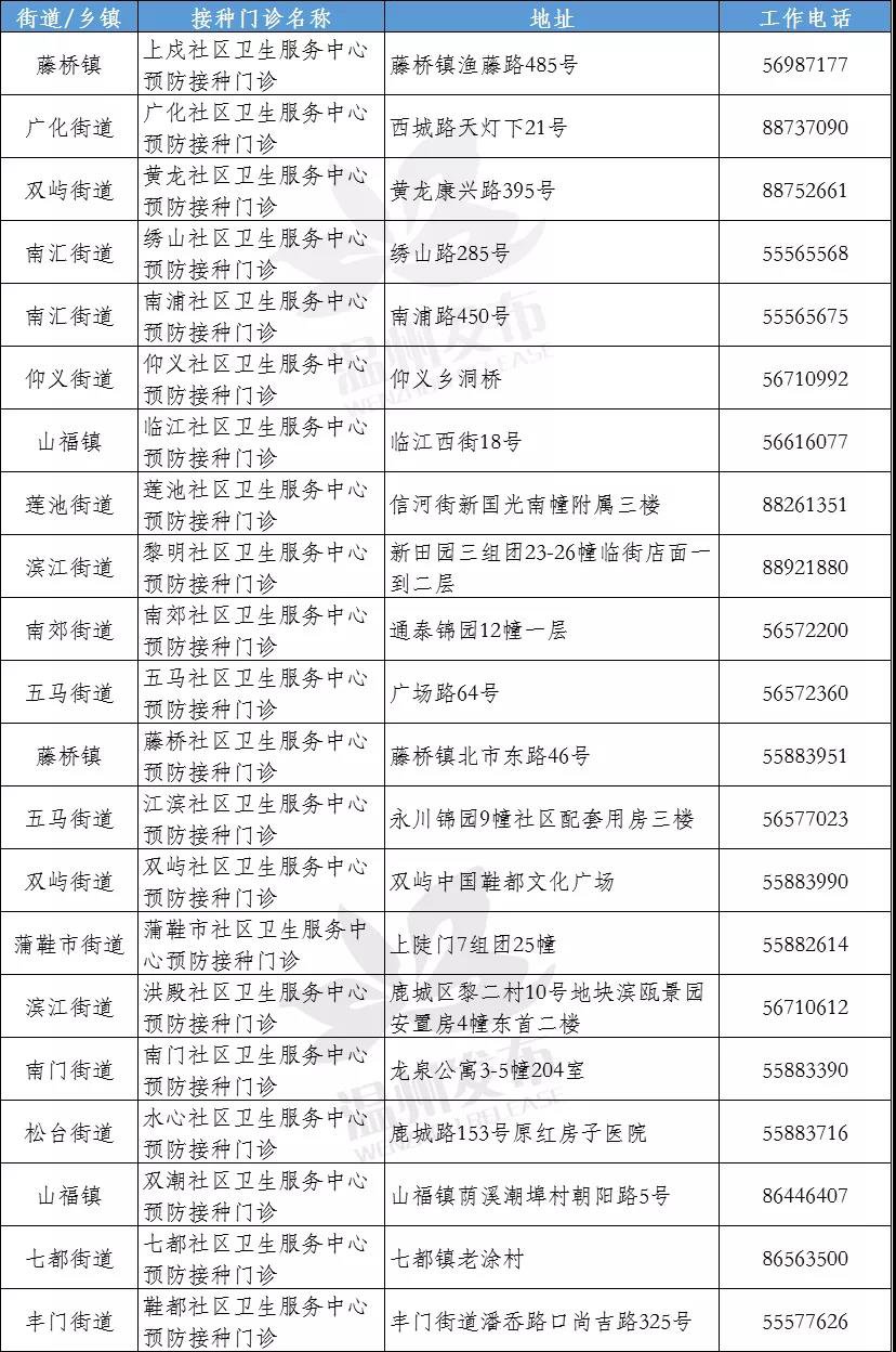 鹿城区接种单位联系方式