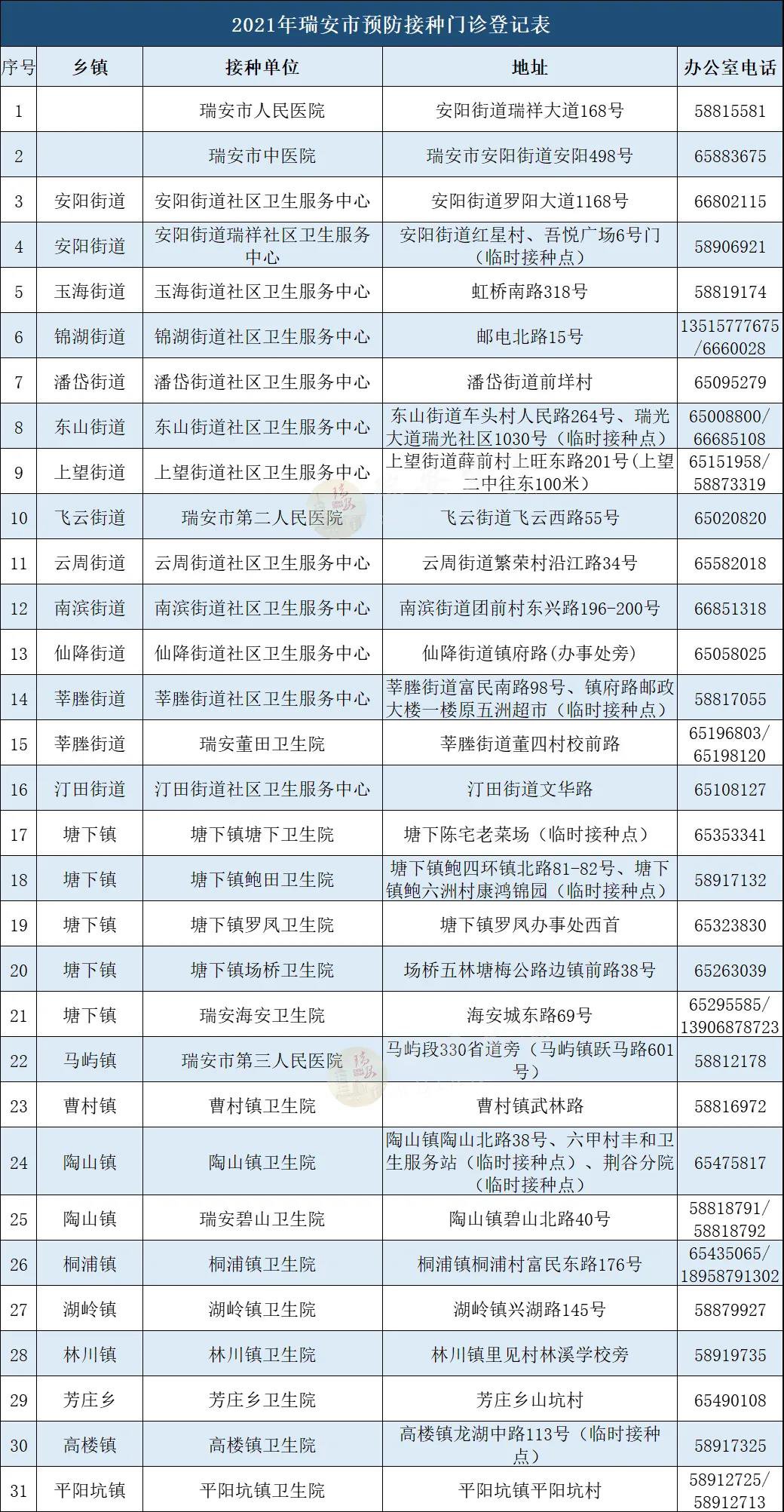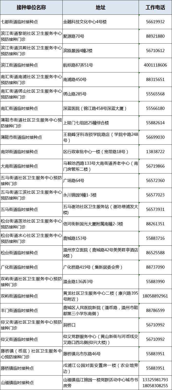温州各区县新冠疫苗免费接种点地址一览