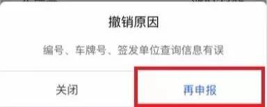 点击“撤销原因”查看被撤销的原因;点击“再申报”,可重新填报该条记录,点击“关闭”则关闭提示框。