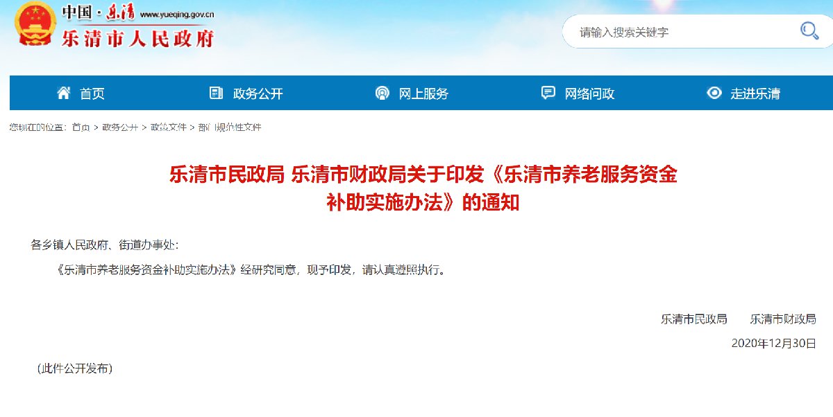 2021温州乐清市养老服务资金补助最新政策(附政策原文)