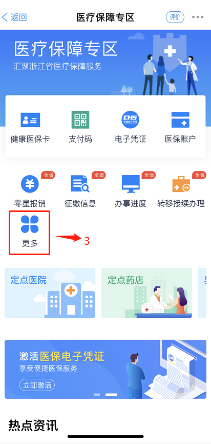 第二步:首页选择“医保”选项,接着点击“更多”