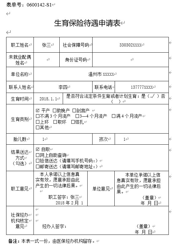 温州市生育保险待遇申请表下载入口(温州市职工生育保险待遇申报表)