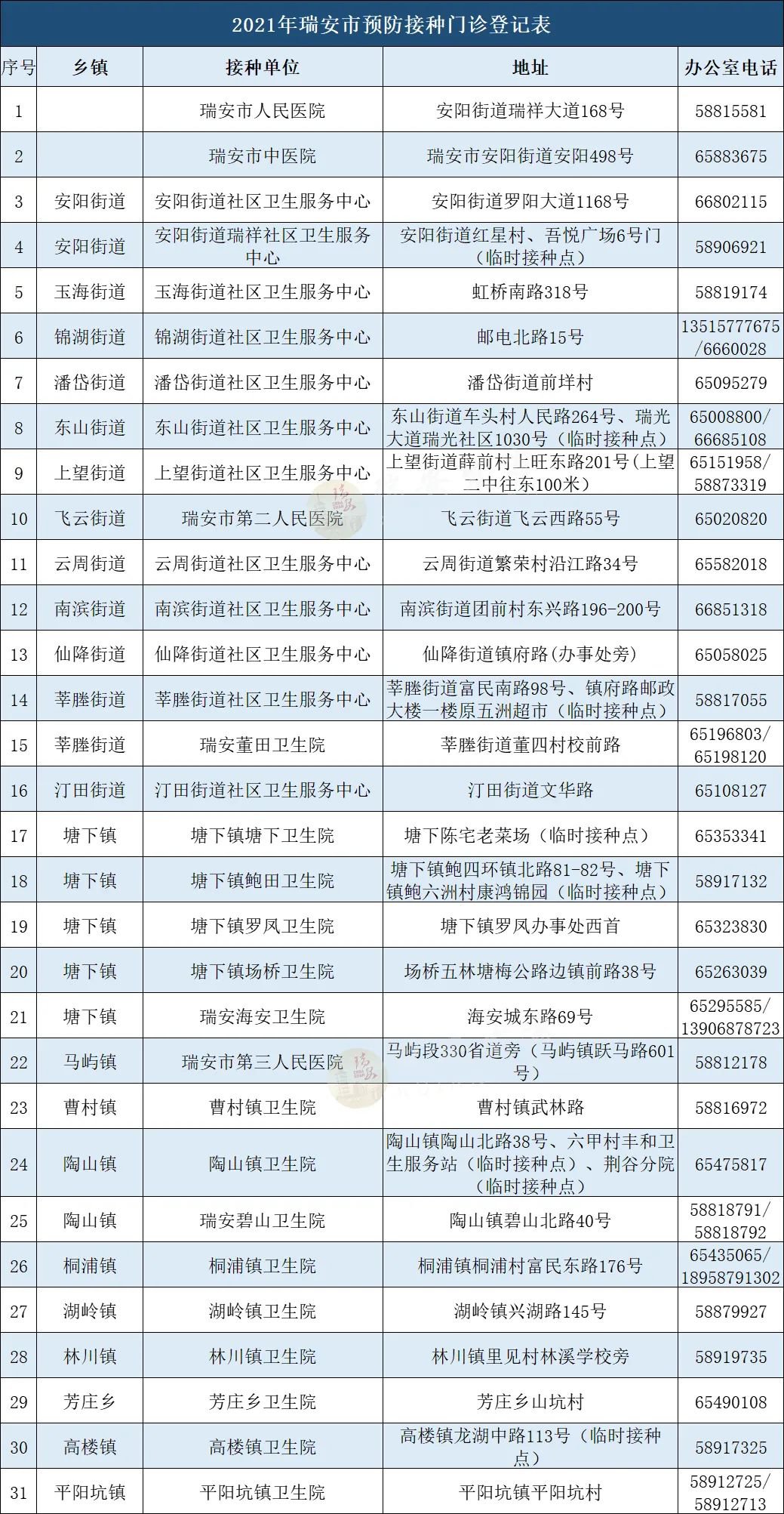 接种地点:瑞安市中医院门诊大厅一楼成人疫苗接种门诊(十足超市对面)