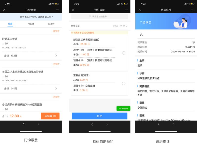 乐清二院正在积极开展智慧医院信息化建设工作,强化诊前、诊中、诊后的服务流程梳理,利用信息化手段诊前让患者了解预约挂号流程、医务人员、检验检查项目等信息;诊中简化流程、方便患者付费、取报告、做检查等;诊后可以线上和医务人员沟通咨询,方便患者随访康复等。