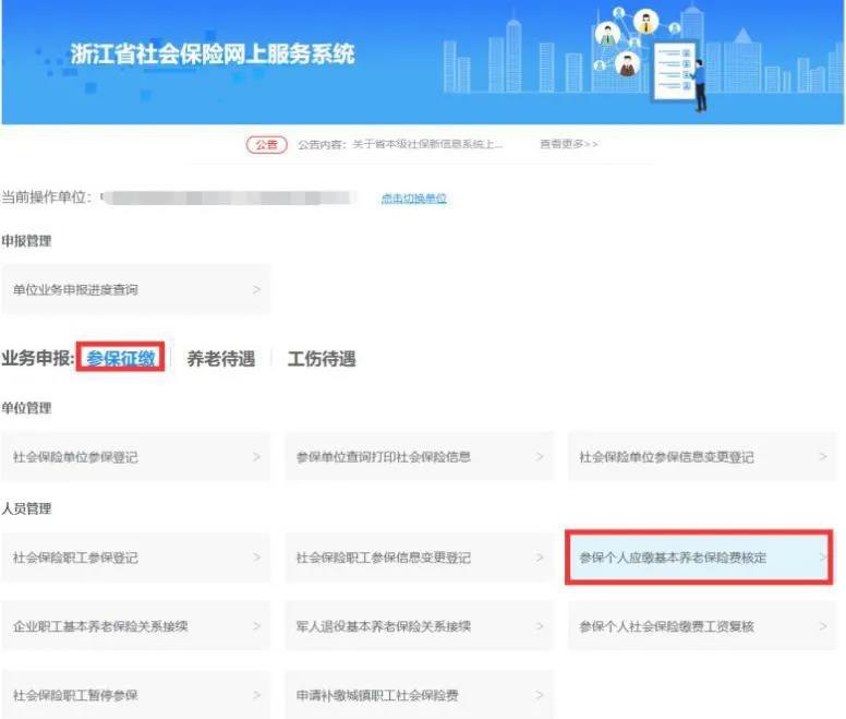选择【参保征缴】,点击【参保个人应缴基本养老保险费核定】。