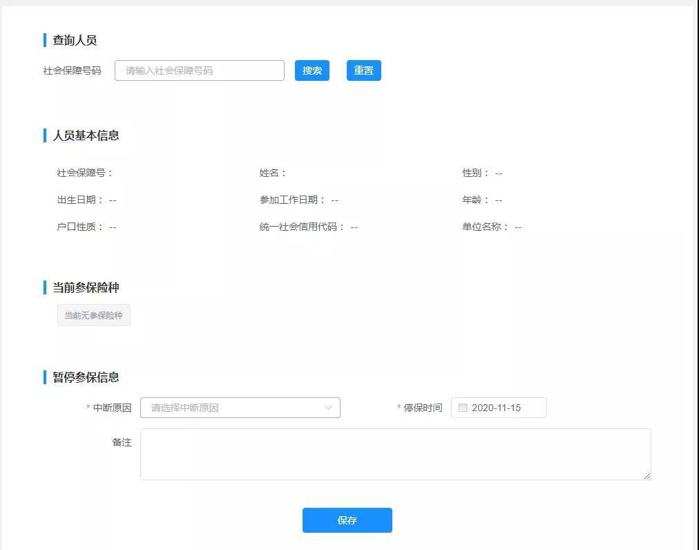 进入办理界面,输入社会保障号后点【搜索】按钮,系统会自动读取人员信息。