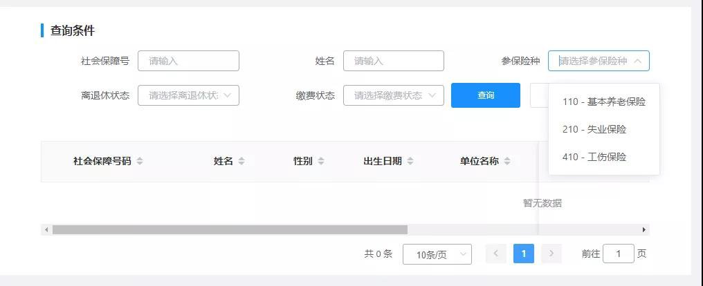 进入模块后点【查询】按钮可以查询出本单位的缴费情况,也可以输入查询条件后再查询