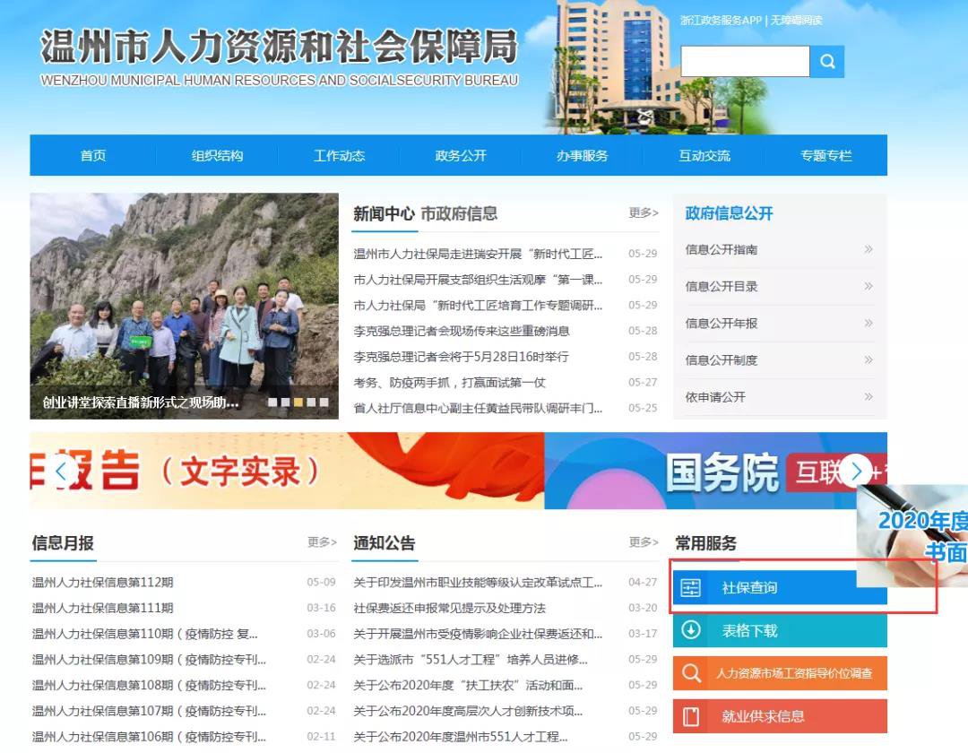 1、输入网址:http://hrss.wenzhou.gov.cn/直接进入温州社保查询页面。