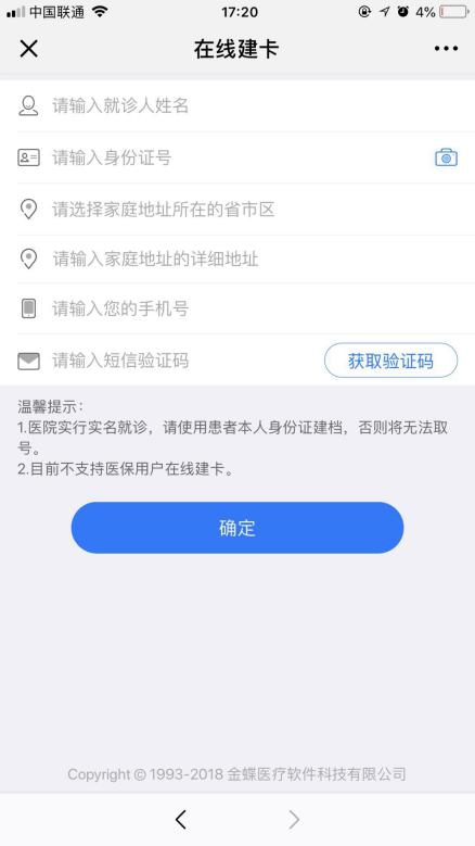 注:如无我院就诊卡或者医保卡,可直接在线建卡,依次填入信息即可;
