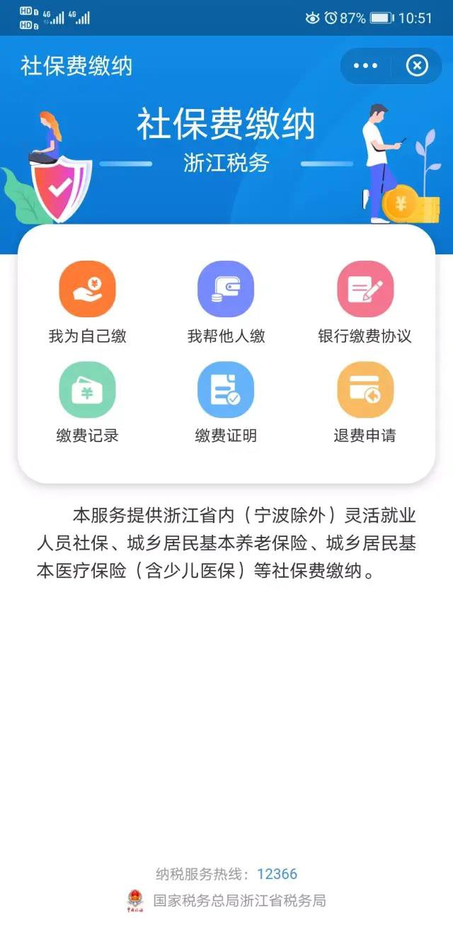 3、微信缴费:打开微信,搜索浙江税务社保缴费—我要办理—社保费缴纳。