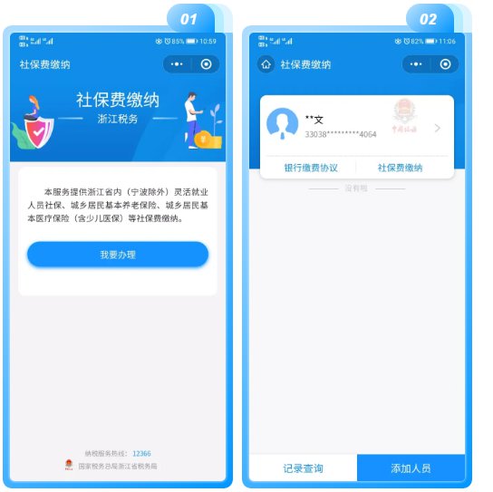 4、微信签约:微信小程序搜索“浙江税务社保缴费”—我要办理—录入参保人员姓名和身份证号—银行缴费协议—银行缴费协议。该方式只能给本人签约,无法将他人签约在本人银行卡下。