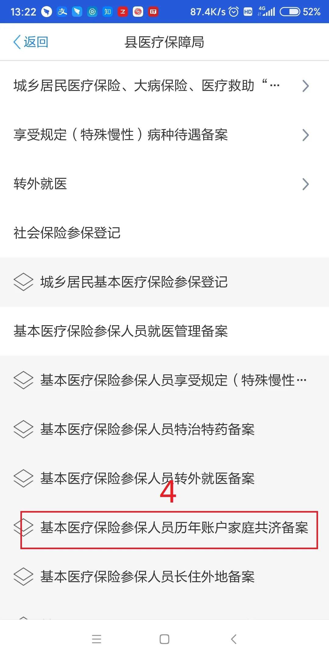 5.点击“基本医疗保险参保人员历年账户家庭共济备案”